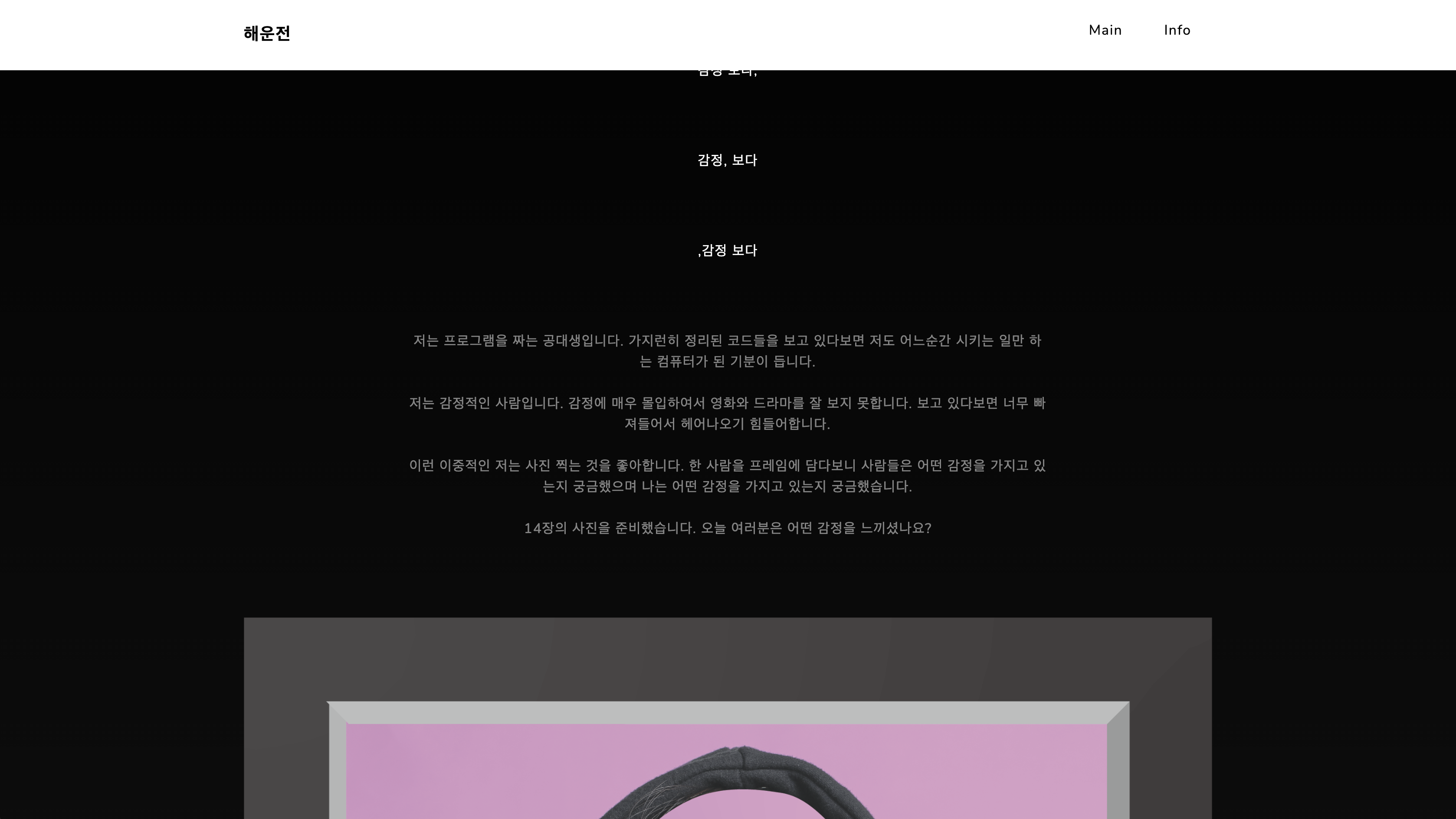 <h2 class="text-white mb-4">해운전<br><br>오늘 당신은 어떠한 감정과 생각을 느끼셨나요?<br><br></h2>